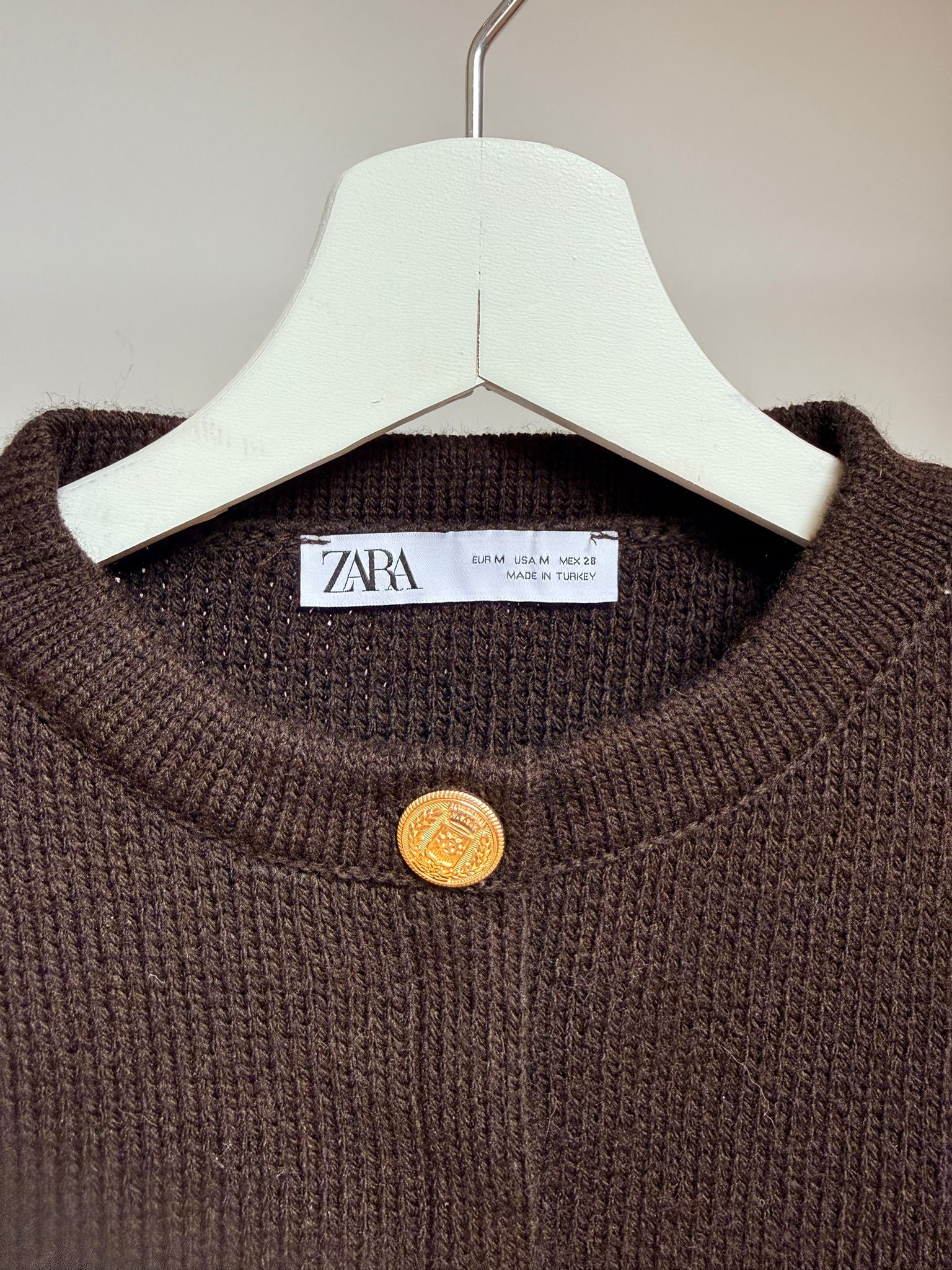 Chaqueta de punto marrón con botones dorados Talla M – Zara | Pre Owned
