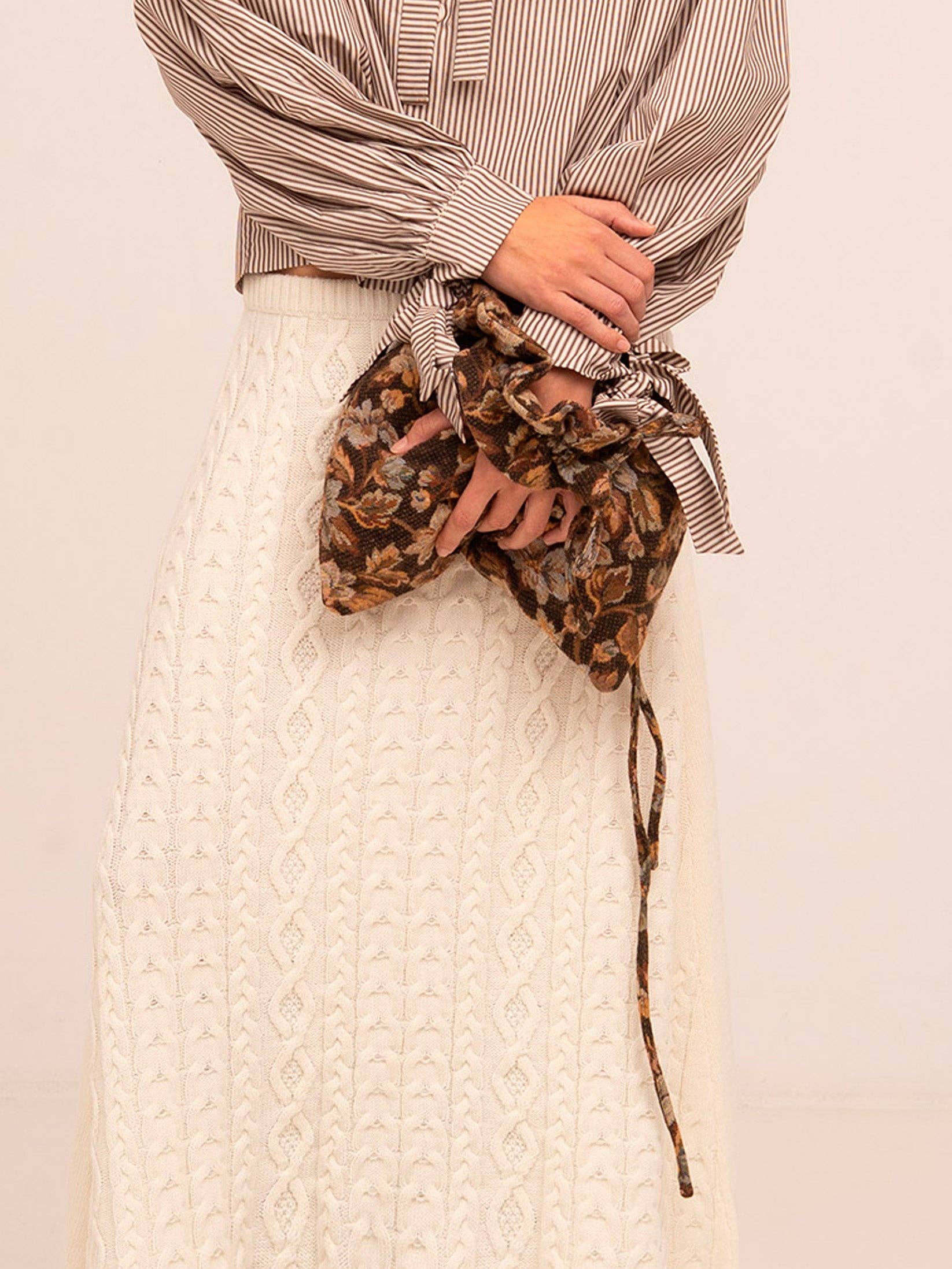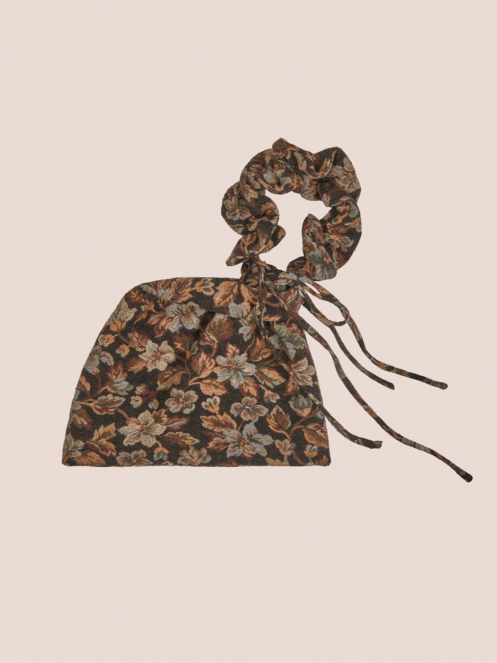Floral pouch bag in brown tones, an elegant and feminine accessory that adds a sophisticated and natural touch to any look.