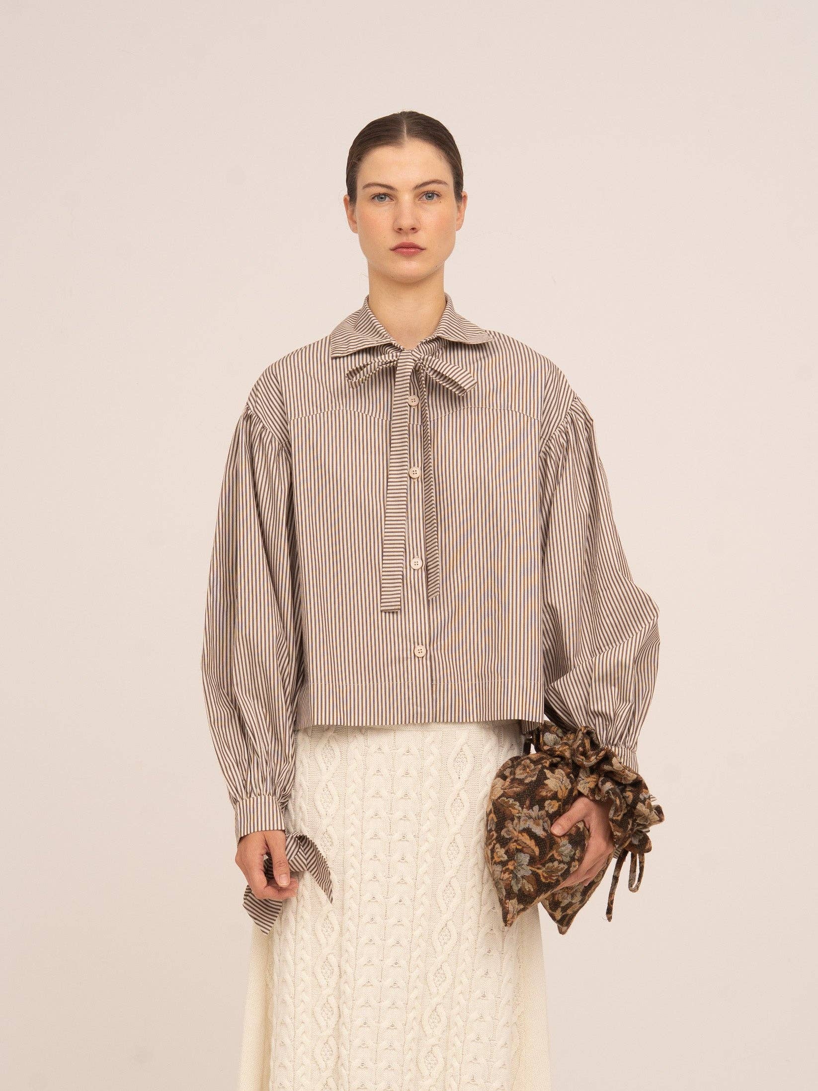 Crafted from floral print fabric, this bag features an adjustable drawstring closure with a top knot, allowing you to customize the fit and keep your essentials secure. A gathered handle adds both style and comfort. Its lightweight and versatile design makes it the perfect accessory to elevate everyday looks or complement more formal outfits. It pairs beautifully with dresses, midi skirts, or neutral ensembles for a polished and stylish finish.